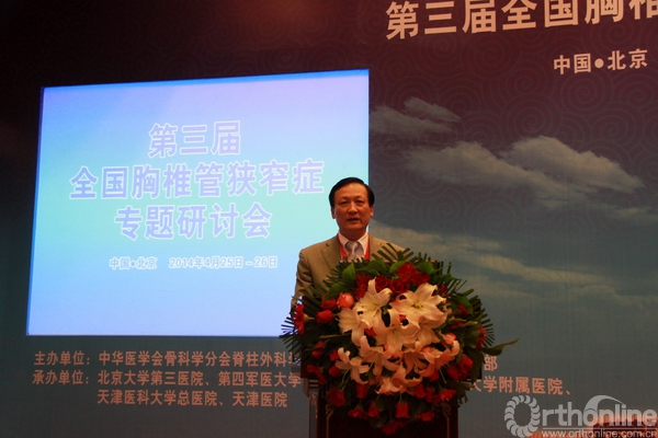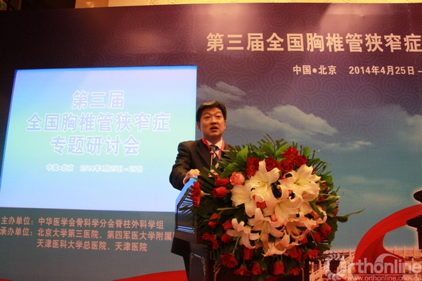 近年来胸椎管狭窄症的诊疗技术取得了很大进步,新认识、新技术层出不穷,但仍存在一些问题需要总结和规范。鉴于此,在成功举办了两届胸椎管狭窄症专题研讨会的基础上,2014年4月26日,由中华医学会骨科学分会脊柱外科学组、《中华骨科杂志》编辑部主办,由北京大学第三医院、第四军医大学附属西京医院、宁夏医科大学附属医院、天津医科大学总医院、天津医院联合承办,由北京大学第三医院陈仲强教授担任大会主席的第三届全国胸椎管狭窄症专题研讨会在北京召开,此次会议邀请了国内脊柱外科领域的多位著名专家到会演讲并参与讨论。