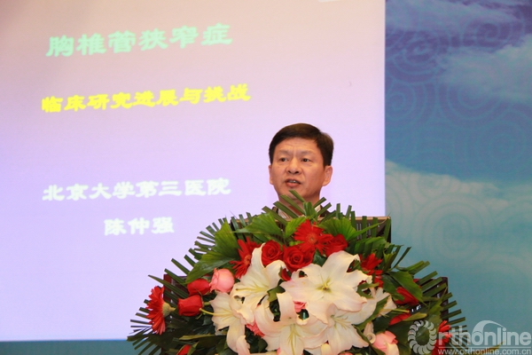 开幕式由北京大学第三医院骨科主任刘忠军教授主持,中华医学会骨科学分会脊柱学组组长王岩教授作为特邀嘉宾致辞,青岛大学医学院附属医院胡有谷教授致辞,北京大学第三医院副院长刘晓光教授致辞,陈仲强教授做了题为《胸椎管狭窄症临床诊疗面临的问题与挑战》的主题发言。