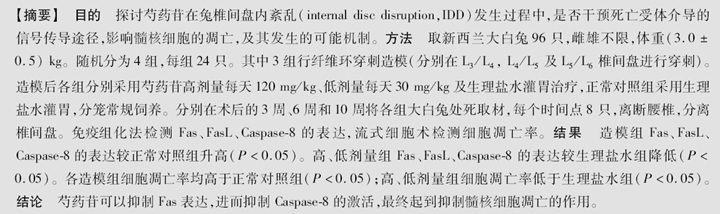 芍药苷对椎间盘内紊乱兔Fas介导的凋亡通路的调节作用