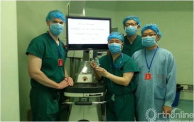 在为其进行了全面的检查后,专家诊断其严重的脊柱骨折已损伤脊髓,如不及时手术治疗将可能导致其瘫痪,永远无法直立行走。经过充分的术前讨论后,专家决定启用目前国际上最先进的手术机器人系统辅助为其进行手术治疗。手术中,专家们先通过术中影像检查系统为其进行了定位,将采集到的肖先生受伤的脊柱的数字化信息导入手术机器人系统,然后经由专门的软件对手术进行数字化模拟设计。在完成了手术机器人定位之后,医生仅在肖先生腰背部打了三个4毫米“钥匙孔”大小圆孔,然后专家在手术机器人的辅助指引下为肖先生完成了受伤脊柱的高精准修复。整个手术仅耗时2小时,较以往手术节省近三分之一。而且,因为患者术中失血仅50ml,所以没有额外补充输血。