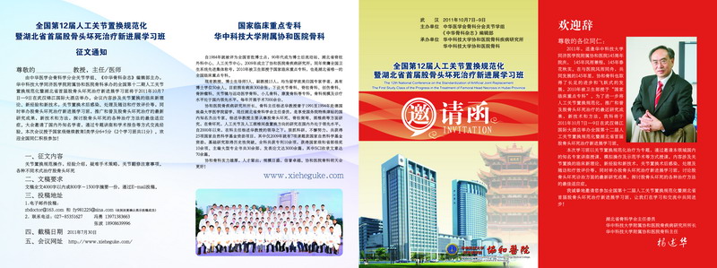 由中华医学会骨科学分会关节学组、《中华骨科杂志》编辑部主办,华中科技大学同济医学院附属协和医院骨科承办的第十二期全国人工关节置换规范化暨湖北省首届股骨头坏死治疗新进展学习班拟定于