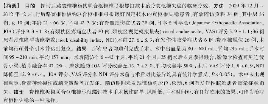 寰椎椎板钩联合枢椎椎弓根螺钉治疗寰枢椎失稳的临床疗效