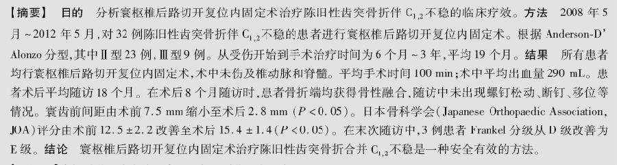寰枢椎后路切开复位内固定术治疗陈旧性齿突骨折伴C1,2不稳定