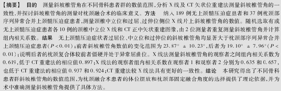 不同影像学方法测量斜坡椎管角的一致性分析