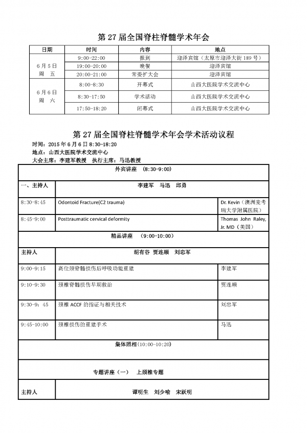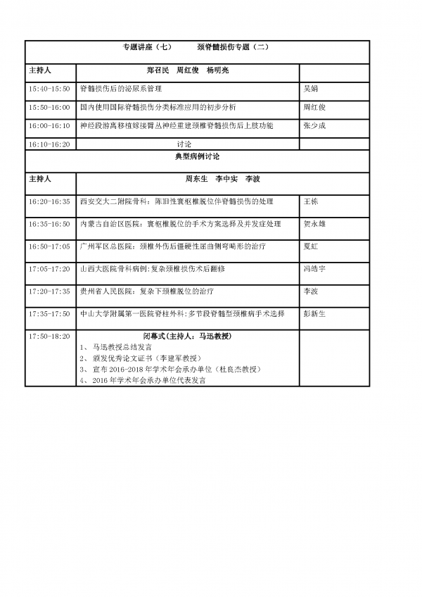 3. 颈椎损伤的治疗及康复典型个案病例PPT,一经选用,将在大会进行重点讨论。