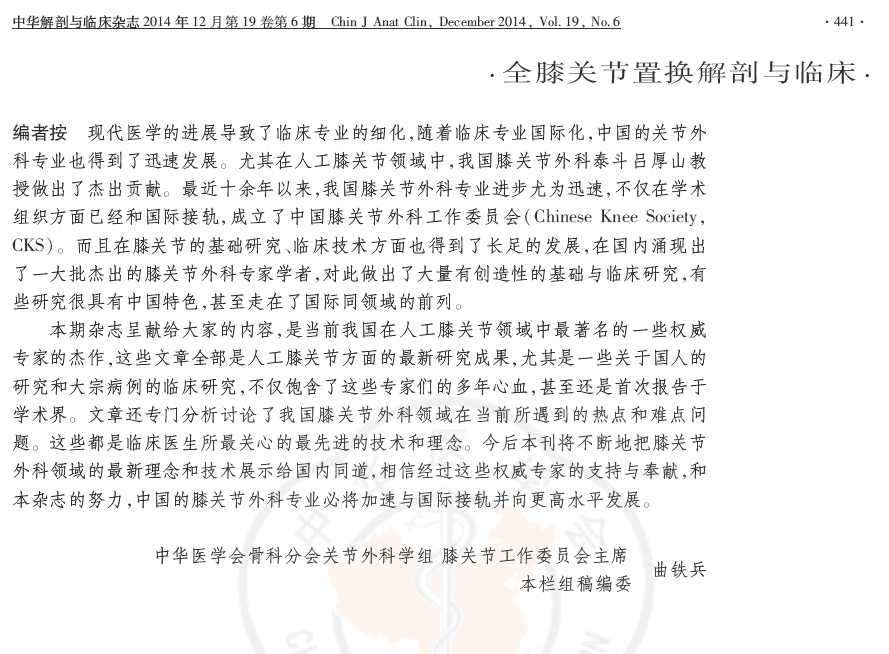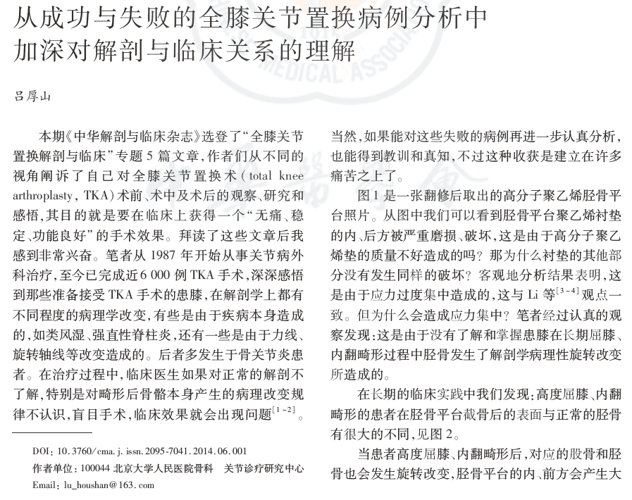 从成功与失败的全膝关节置换病例分析中加深对解剖与临床关系的理解