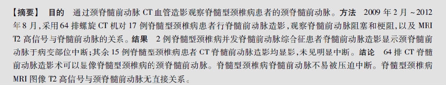 脊髓型颈椎病脊髓前动脉CT血管造影观察