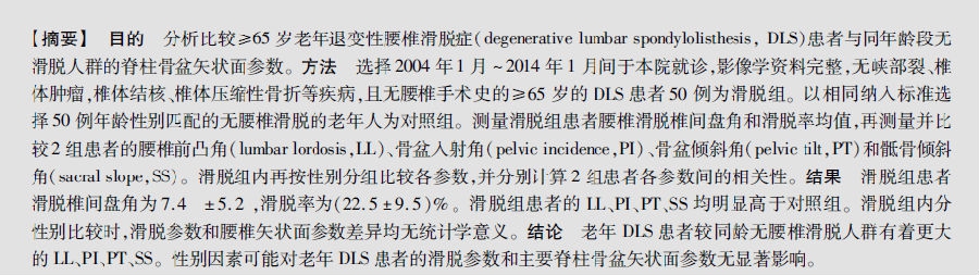 老年退变性腰椎滑脱症患者脊柱骨盆矢状面参数研究