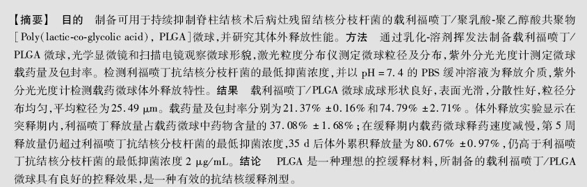 载利福喷丁/聚乳酸-聚乙醇酸共聚物微球制备及体外释放