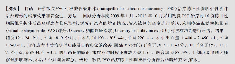 改良经椎弓根截骨矫形术治疗陈旧性胸腰椎骨折伴后凸畸形