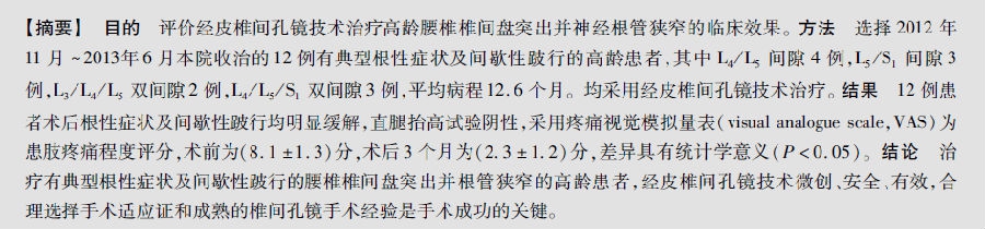 经皮椎间孔镜治疗高龄腰椎椎间盘突出并神经根管狭窄的短期疗效