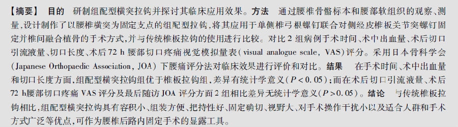 组配型横突拉钩的研制与临床应用