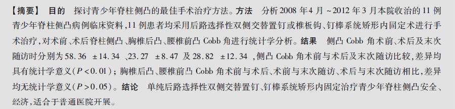 后路选择性双侧交替置钉钉棒矫形内固定治疗青少年脊柱侧凸