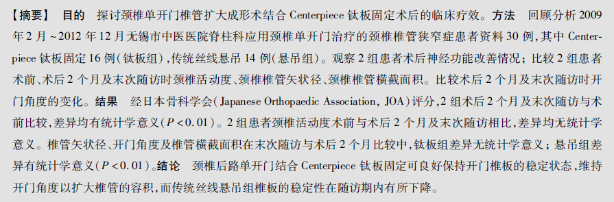 Centerpiece钛板在颈椎单开门椎管扩大成形术中的应用