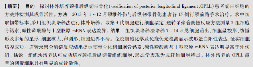 颈椎后纵韧带骨化细胞体外培养及成骨活性检测
