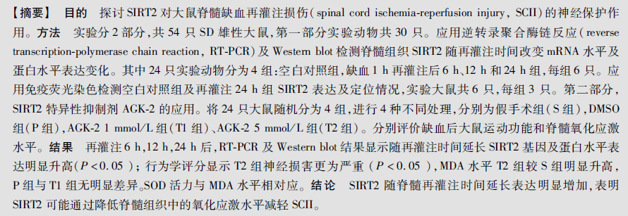 SIRT2在大鼠脊髓缺血再灌注损伤中的作用