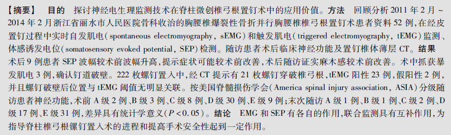 神经电生理监测技术在胸腰椎骨折微创椎弓根螺钉置入术中的应用