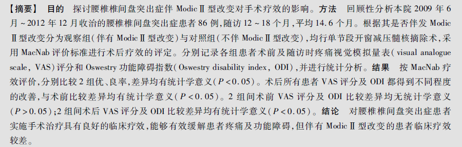 ModicⅡ型改变对腰椎椎间盘突出症手术疗效的影响