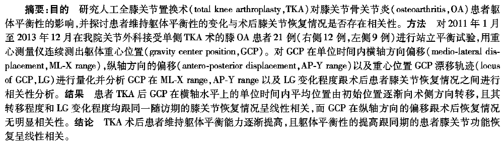 人工全膝关节置换术对患者躯体平衡性影响的研究