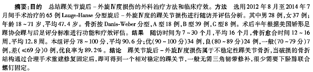 踝关节旋后-外旋IV度损伤的外科治疗分析