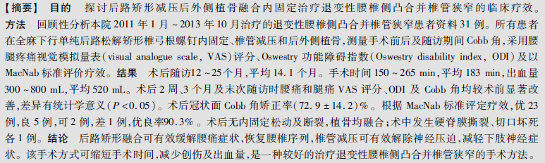退变性腰椎侧凸合并椎管狭窄的手术治疗