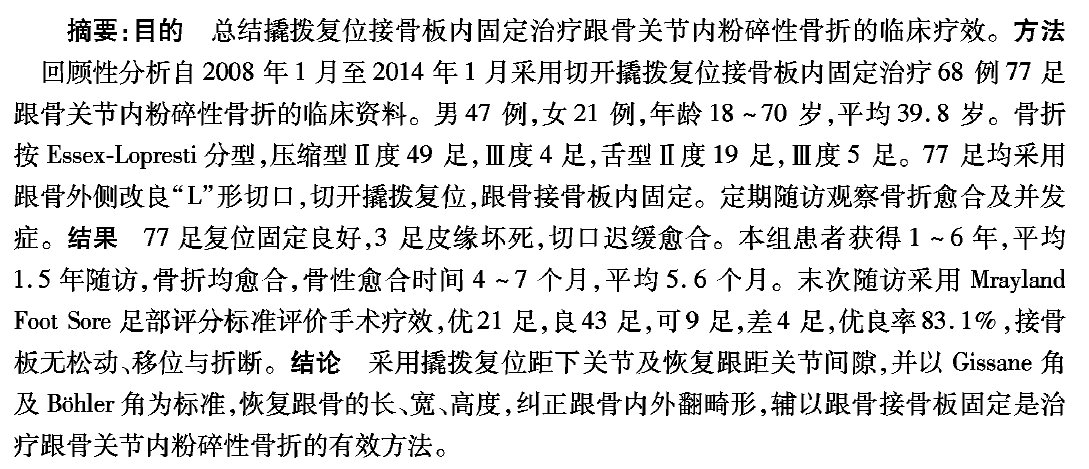 撬拨复位接骨板内固定治疗跟骨关节内粉碎性骨折