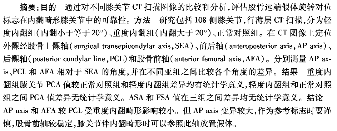 内翻畸形膝关节股骨远端假体旋转对位标志的研究