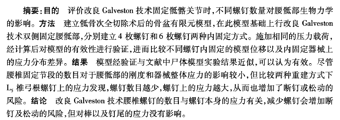 骶骨次全切除术后骶髂关节重建的有限元分析
