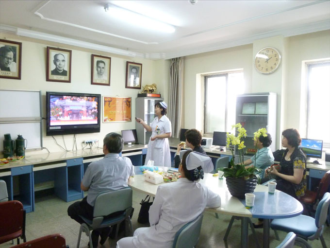 在历时4小时的参观考察中,首先由杨旭护士长进行了协和医院骨科情况介绍,图文并茂的PPT使香港护理同仁对协和骨科的发展史及科室特色有了深入的了解;接着大家参观了教学老师杨莹进行的《先天性脊柱侧凸围手术期》护理查房,查房内容清晰全面,重点突出,给香港专家留下了深刻印象;查房结束,香港专家在护理部主任、病房护士长的陪同下对一例先天性脊柱侧凸患者和一例全膝关节置换术后患者进行了“面对面”的床旁考察,通过与患者近距离沟通交流,了解了优质护理服务的成效。