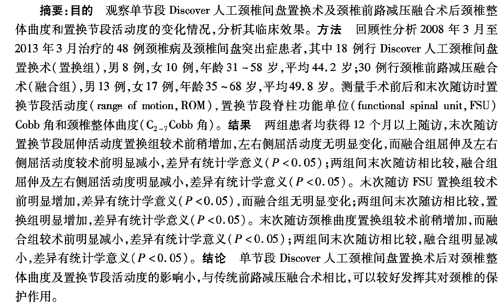 Discover颈椎间盘置换对颈椎曲度和置换节段的影响