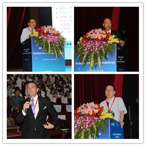 山西大医院副院长兼骨科主任马迅教授主持了此次大会。开幕式上山西大医院刘强院长致辞,欢迎来自全国各地的专家教授在太原传道、授业、解惑,进行学术交流;中国健康促进基金会骨病专项基金副主任委员兼秘书长赵艳梅女士代表基金会领导对会议的召开表示热烈祝贺;中华医学会骨科学分会主任委员,北京积水潭医院院长田伟教授发表了热情洋溢的贺词,对山西大医院的发展和建设给予了高度评价;山西省政协副主席,山西省卫生和计划生育委员会主任卫小春教授在致辞中就医疗改革的五项制度作了精辟总结并希望与会的专家能将更多的宝贵临床经验传授给参会的听众。