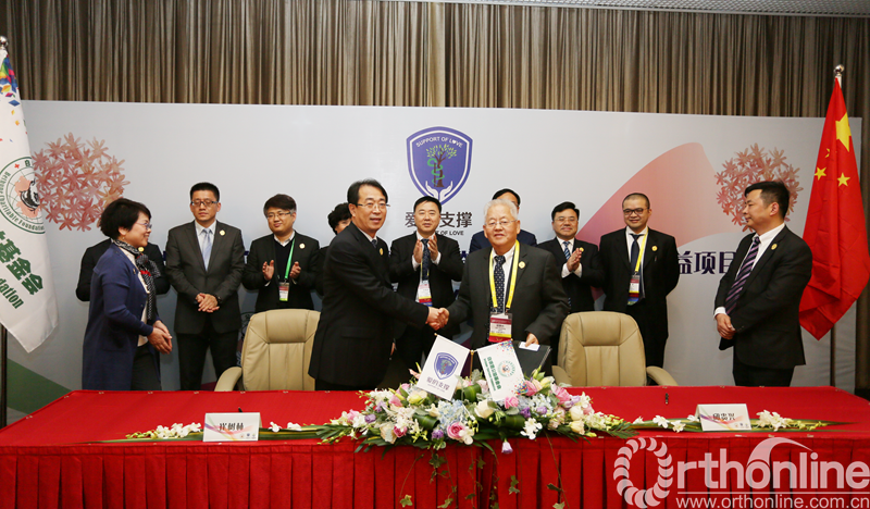 11月18日下午,在国家会议中心COA2016大会现场,白求恩公益基金会理事长、中国工程院院士、北京协和医院邱贵兴教授与山东康盛医疗器械有限公司崔树林董事长共同在“爱的支撑”-白求恩·康盛脊柱畸形矫正爱心捐助协议上签字,标志着这个将历时三年的爱心公益项目正式启动。