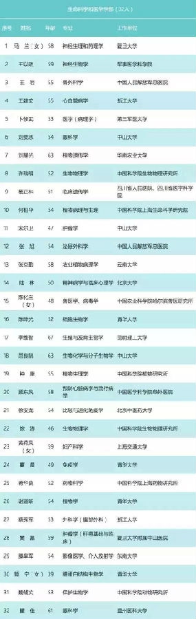 导语:中国科学院正式公布了2017年中国科学院院士增选初步候选人名单,共计有157位科学家入选。生命科学和医学学部共32人。