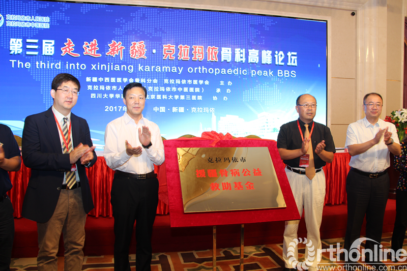 孔清泉教授在援疆期间,急边疆贫困百姓就医之所急,倡议发起了“援疆骨病公益救助基金”。在今天的开幕式上,该基金正式揭牌启动,落地克拉玛依。