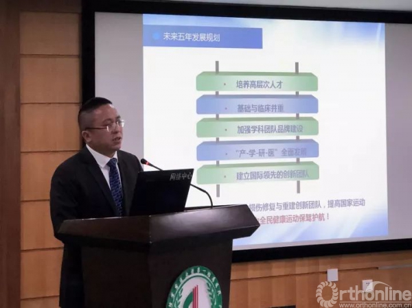 复旦大学华山医院陈世益教授进行了“中国运动医学的发展与思考”主题演讲,深入剖析中国运动损伤修复与重建的前世今生,充分肯定团队的前期工作,祝贺团队正式获批。