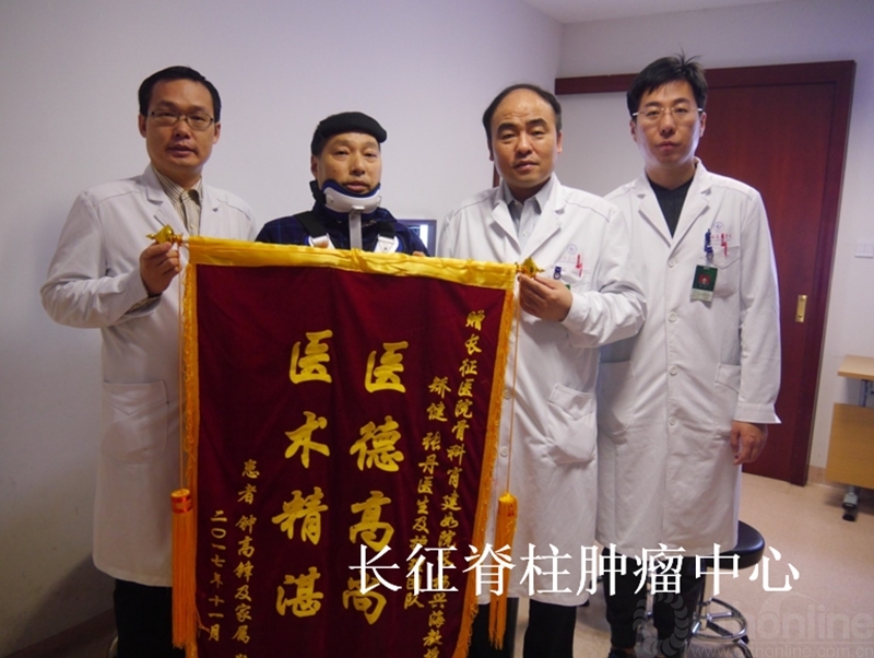 来自浙江的钟先生罹患上颈椎脊索瘤长达9年之久,其间经历了一次手术后,不久肿瘤复发,随着颈部肿瘤日渐增大,严重压迫气管和食道,造成呼吸及吞咽困难,病情非常凶险。