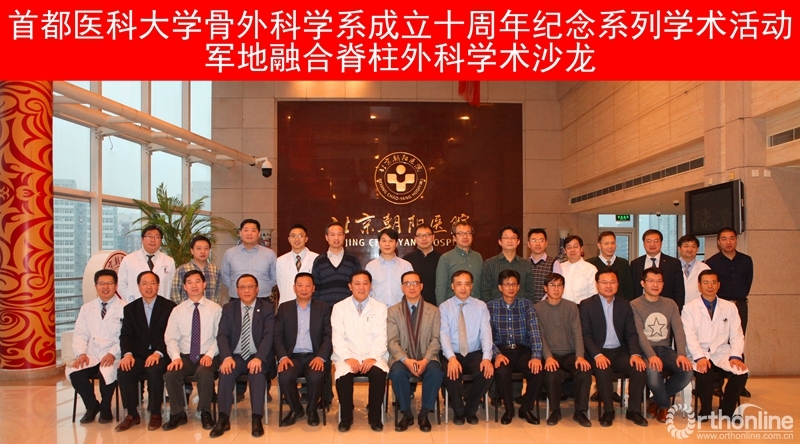 在首都医科大学骨外科学系成立十周年之际,由首都医科大学骨外科学系主办,首都医科大学附属北京朝阳医院承办的2017首都医科大学骨外科学系“军地融合脊柱外科沙龙”在朝阳医院召开。此次旨在响应中央号召,促进军地融合,因此会议邀请了解放军驻京各大医院的多位知名专家,与首都多家三甲医院的骨科专家进行病例讨论。