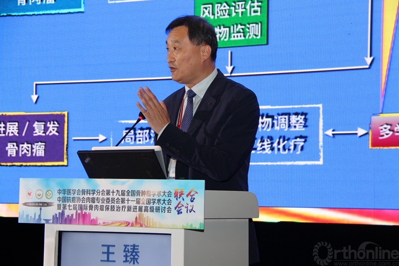 空军军医大学西京医院王臻教授讲解了《如何让骨肿瘤患者治疗获益最大化》,他通过介绍保肢手术的“时间窗”,对比化疗与非化疗、手术与非手术等治疗效果,从临床遇到的问题中找出了使患者获益最大化的答案。