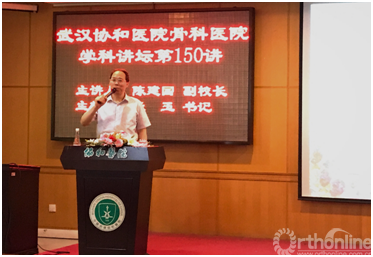 2018年5月23日清晨,当大家都忙碌在清晨上班途中时,华中科技大学同济医学院附属协和医院五大教室传来阵阵掌声。华中科技大学副校长、同济医学院院长、党委书记陈建国教授做客武汉协和医院骨科医院第150期学科讲坛,为广大协和骨科人带来一场丰盛的学术大餐。