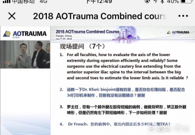 同时,本届学习班也有所创新。在传统的授课方式上,本次学习班第一次采用了网络课程直播的形式,方便,实时,直观地学习AO精品课程。半天的直播课程,总计共有XXX人参与!这是一次突破性的尝试,通过最新的技术,突破时间空间的障碍,覆盖更多的中国医生,使AO的理念得到更广泛的传播!重要的是,新颖的网络授课定位于传播AO创新理念的一种补充,系统性AO课程学习需要参加现场3天的标准化学习,通过讲师面对面地授课,学习和掌握正确理念。