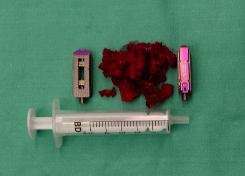 术中使用的通道工具和内植物高度可调融合器是由上海锐植医疗和北京朝阳医院脊柱微创团队共同研发生产,其中高度可调融合器除了能够植骨外,还可撑开最高5mm。