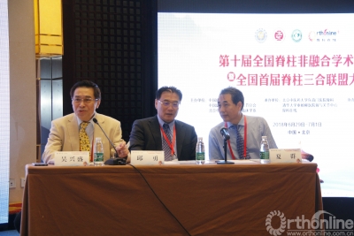 本节会议由南京大学医学院附属鼓楼医院邱勇教授、台湾新光吴火狮纪念医院吴兴盛教授和中国人民武装警察部队后勤学院附属医院夏群教授主持,主要针对目前脊柱非融合相关的热点问题展开讨论。