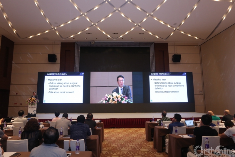 在手术衔接间隙,与会专家分别进行了专题演讲。演讲包括了髂峭/胫骨远端移植行肩盂解剖重建,巨大肩袖手术技巧以及肩关节后向不稳定的诊治。专家们展示了自己的经验和技巧,并展示他们的病例,引起了与会专家和代表们的兴趣和关注。与此同时,与会专家和代表们针对手术演示中的问题和技术还进行了热烈而深刻的讨论。