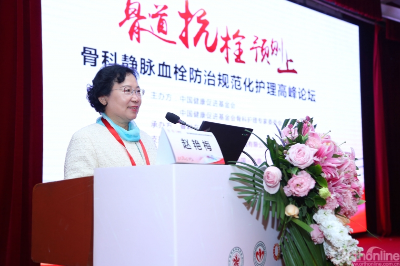 中国健康促进基金会理事、骨病专项基金副主任委员兼秘书长赵艳梅女士致辞,她充分肯定了专业委员会自2016年11月成立以来,引领全国骨科护理同道在静脉血栓预防护理管理工作中取得的卓著成绩,并对本次论坛首次倡导《骨科静脉血栓预防及护理中国专家共识》发布会表示祝贺,期待专家共识出台并规范临床骨科静脉血栓预防护理管理,促进骨科静脉血栓防治更加精准实效。