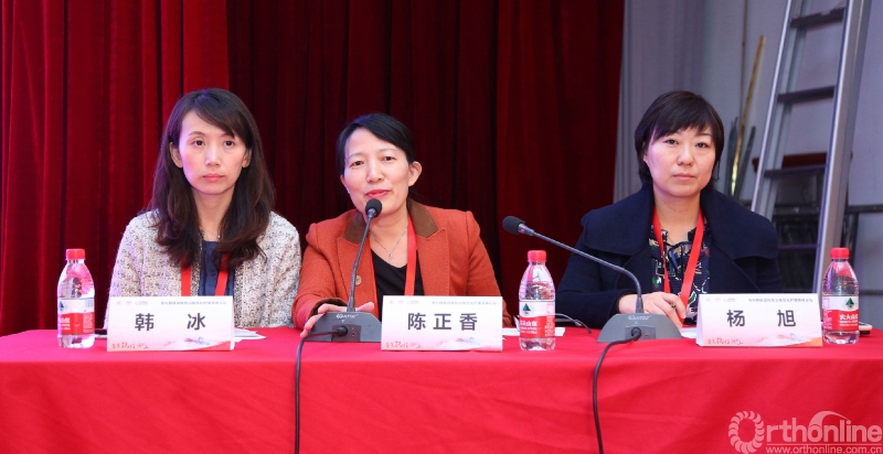 ▲北京积水潭医院护理部韩冰副主任、南京大学医学院附属鼓楼医院骨科陈正香护士长、北京协和医院骨科杨旭护士长主持专家论坛