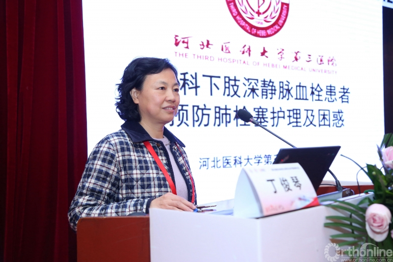 副主任委员、河北医科大学第三医院护理部丁俊琴主任授课题目《骨科下肢静脉血栓患者预防肺栓塞护理及困惑》。肺动脉栓塞被称为沉默的杀手,随时使患者失去生命,给患者及家属带来永久的伤害,丁俊琴主任总结了该院在VTE风险防范中的经验,通过建立危机值制度应用于临床,将院内肺栓塞(PE)发生率大幅度降低,并通过高危肺栓塞患者临床资料分析,用典型案例及实践经验,详细介绍了下肢深静脉血栓(DVT)患者预防肺栓塞(PE)的护理,防止PE的发生。