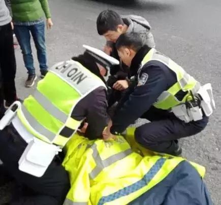 在此千钧一发之际,浙江省人民医院骨科的冯法博医生与执勤交警协力展开抢救。