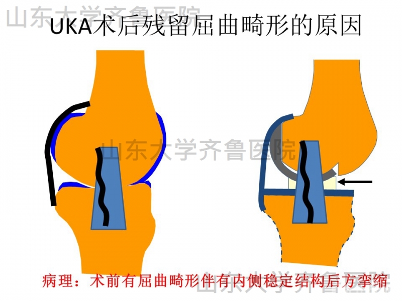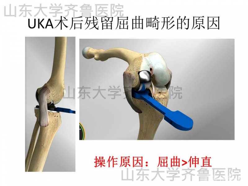 单髁置换(UKA)术后可能会残留屈曲畸形,多是由哪些原因引起?在手术中又应注意哪些方面来避免术后残留屈曲畸形?如果术后出现畸形情况,又应该建议患者怎么康复锻炼?这些问题可能会困扰部分刚刚开展UKA手术的医师朋友。