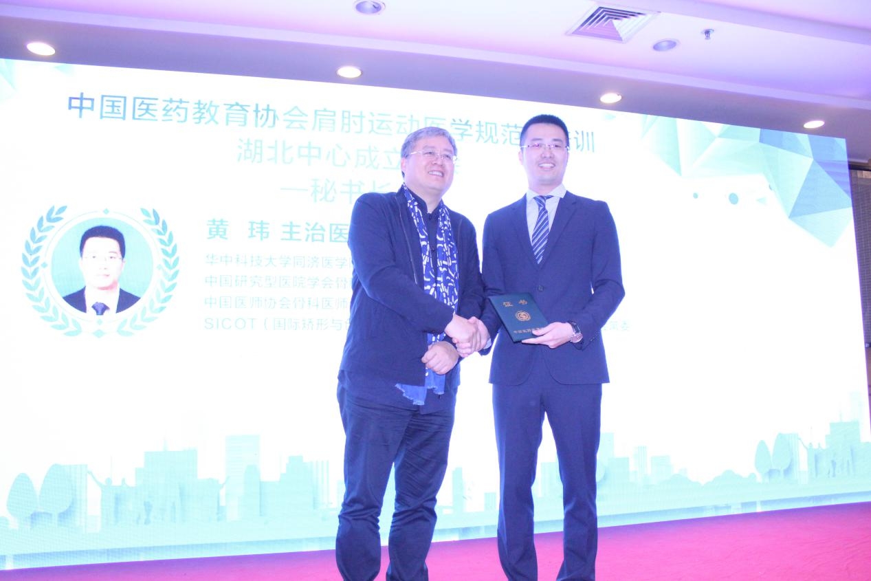 △肩肘运动医学规范化培训湖北中心王洪主任委员为湖北中心常委颁发聘书