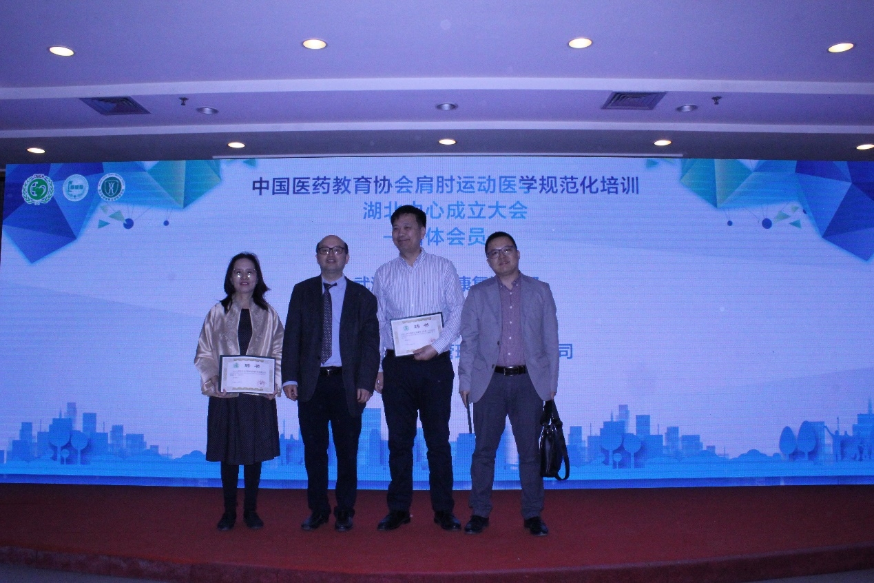 △肩肘运动医学规范化培训湖北中心王洪主任委员为团体会员颁发聘书